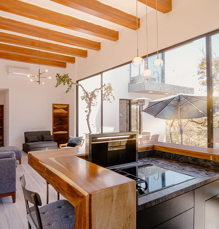 Esta Suite cuenta con TV por cable - Persianas automatizadas y Alexa home, acceso a terraza jacuzzi y cuenta con 2 habitaciones, un habitación con cama king size y un sofá cama indivdual y otra habitación con litera matrimonial abajo e individual arriba, ambas con baño propio, la suite cuenta con sala, barra y cocina así como una increíble terraza al aire libre con un amplio jacuzzi para 8 personas.